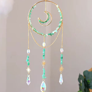 Half Moon Suncatcher with Natural Aventurine Crystals