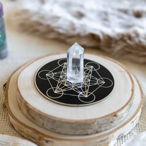 Kristallgitter unterstützen die spezielle Anordnung von Kristallen und Steinen, um dir zu helfen, deine Träume und Absichten während Meditation, Heilungssitzungen oder Ritualen zu manifestieren. Sie sind ein wunderschöner Mittelpunkt für deinen Meditationsraum oder Altar. Ein Kristallgitter zu verwenden ist eine unglaublich kraftvolle und ästhetische Möglichkeit, die Energien der darauf platzierten Kristalle zu bündeln. Diese fließen in den klaren Quarz-Turm im Zentrum und verstärken deine Absichtssetzungsrituale.